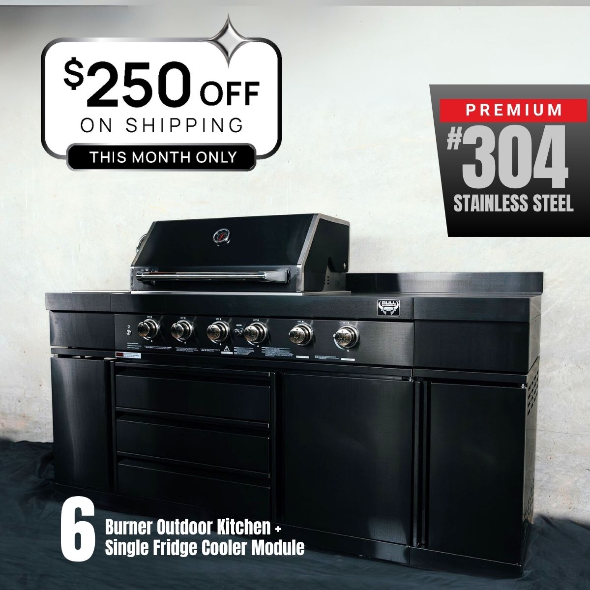 Bull BBQ Black Edition Outdoor Kitchen 6 Burner With Sink & Rotisserie – #304 Stainless Steel