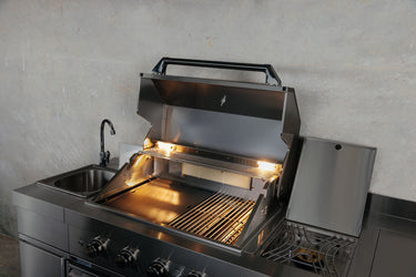 6-Burner BBQ with Sink & Rotisserie + Single Fridge Cooler Module