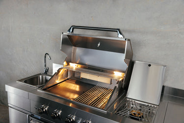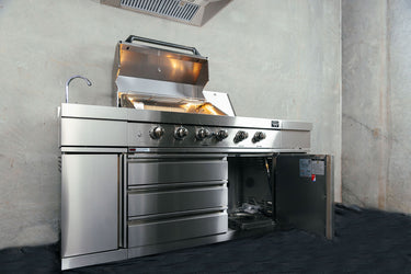 Transform your alfresco cooking into a premium culinary experience with the Bull BBQ® Ultimate Outdoor Kitchen Combo. This all-in-one package delivers a heavy-duty, stainless steel BBQ kitchen featuring six burners, an integrated sink, and rotisserie—paired flawlessly with a sleek 126L stainless steel fridge module. Built entirely from #304 stainless steel, both units offer durability, performance, and style.