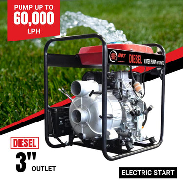 The New BBT 3" Diesel Trash Pump - 6HP is a high-performance water pump engineered to handle the toughest jobs with ease. Designed for moving water with high solid content, this pump is ideal for applications in construction, septic systems, and general water transfer from dams and ponds. The powerful 6.5hp diesel engine ensures reliable performance, delivering superior flow rates and discharge pressures.