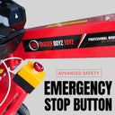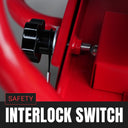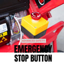 Features emergency stop button and interlock safety switch — the unit won’t run unless the box is properly secured. -