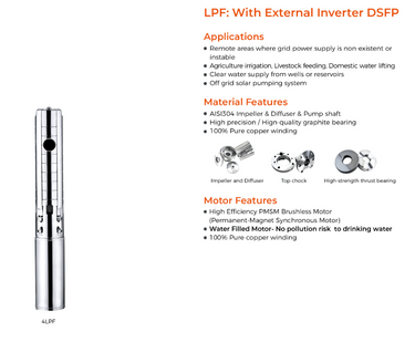 The BBT 4” LPF system includes the DSFP-200-1.5 intelligent hybrid inverter, which offers the following features: