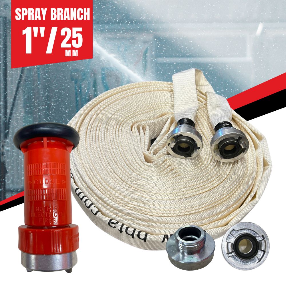 Fire Hose Spray Kit with 30m fire Hose and Adjustable PVC Spray Branch - 25mm (1") - Storz Fitting - SKU FHK-25S