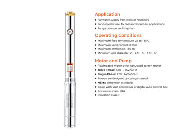 Delivering powerful water transfer and exceptional lift capacity, the BBT 4" Submersible Bore Water Pump is designed for demanding applications in deep wells, agricultural irrigation, and large-scale water supply. Equipped with a heavy-duty control box, this pump ensures reliable performance and motor protection under intense operating conditions.