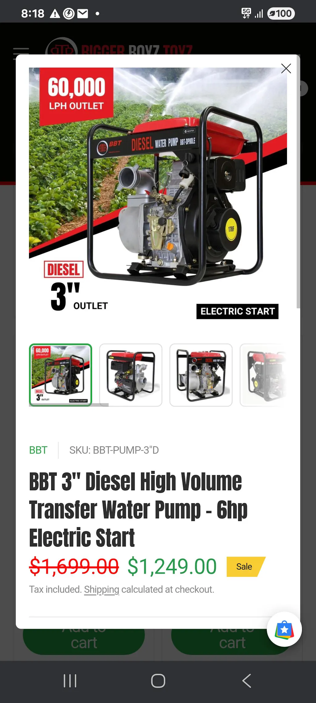 Just look at the features we have included on this top of the range pump! Which include a massive 6HP Direct Injected Diesel engine, equipped with electric start and recoil start, decompression valve for easy starting, 3"/75mm delivery outlet to allow you to transfer water when needed from a dam or waterhole, with a max 26M lift you can rest assured the BBT diesel pump with getting it where you need it.