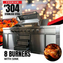 Bull BBQ Stainless Steel Outdoor Kitchen Large 8 Burner With Sink and Rotisserie – #304 Stainless Steel