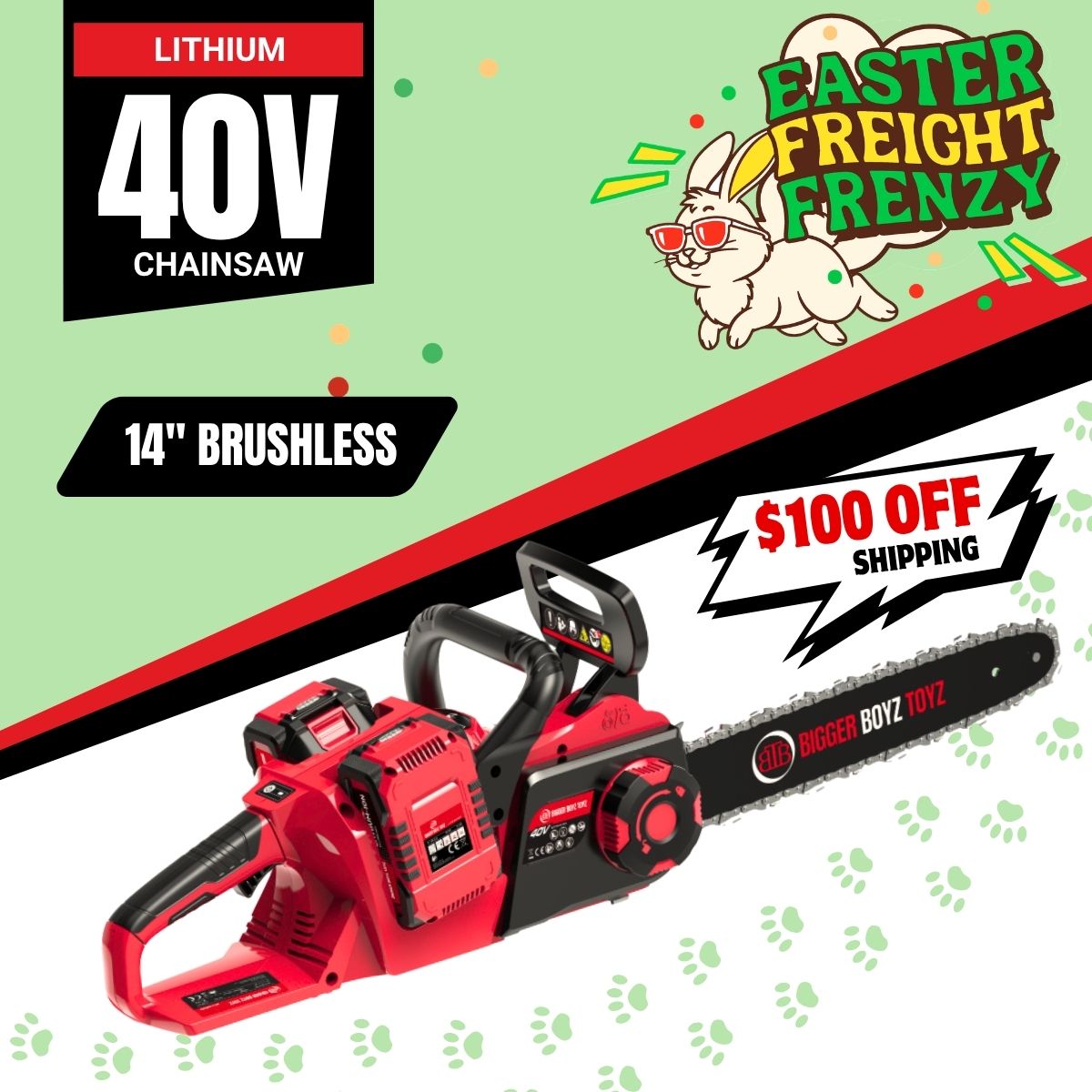 BBT 40V Cordless 14" Chainsaw - Brushless & Dual 4.0Ah Lithium-ion Makita Compatible