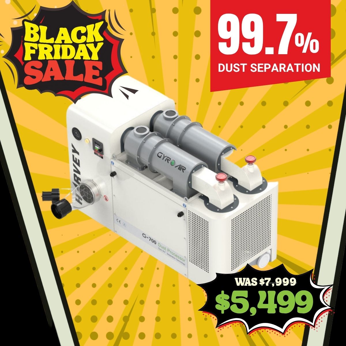 Upgrade your dust collection system with the award-winning Harvey Gyro G700 and experience the future of woodworking air filtration.