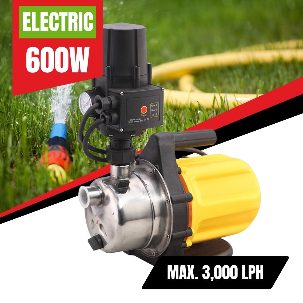 This single-stage, self-priming electric pump punches well above its weight. With a powerful 600W motor, it delivers 1 horsepower and pumps up to 3000 litres per hour (50L/min), backed by an impressive 35-metre head height.